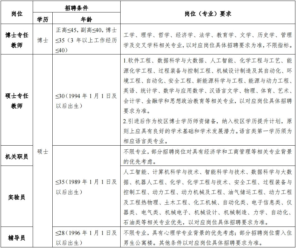 中国石油大学(北京)克拉玛依校区2024年度招聘简章